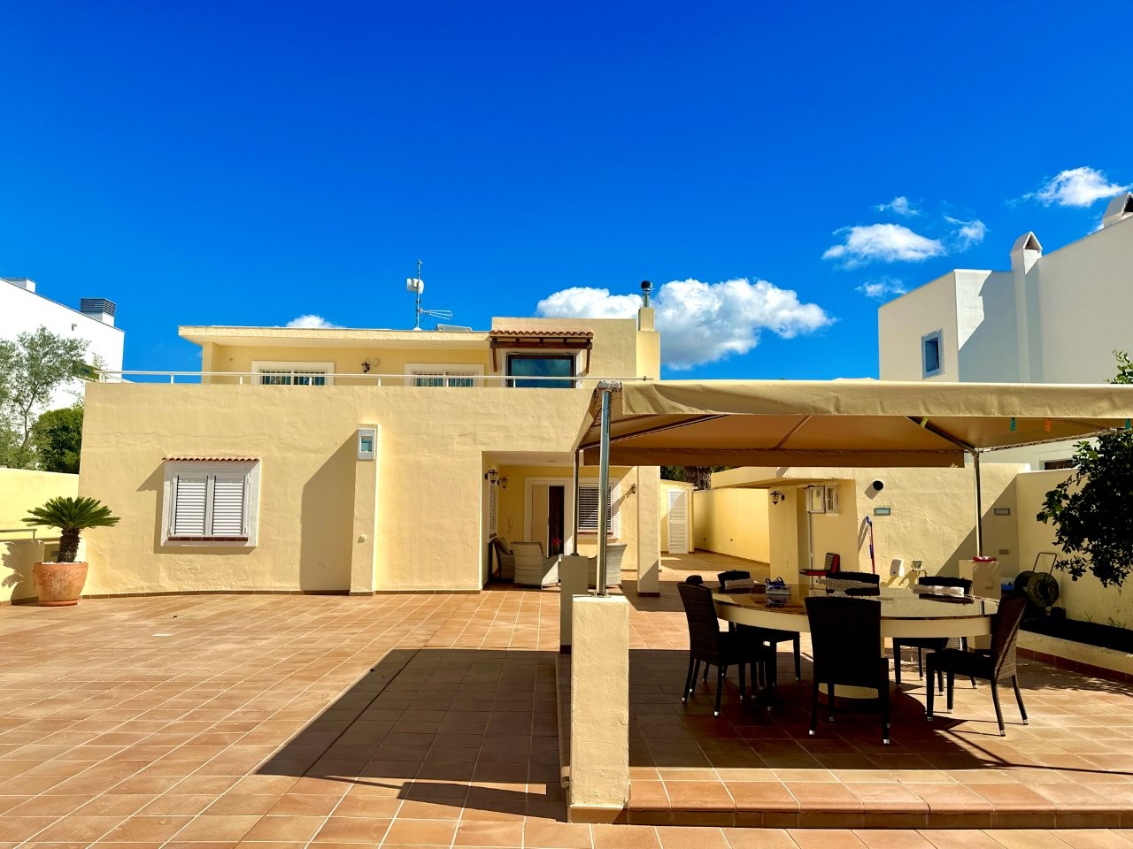 Esta villa está situada en el centro de Santa Gertrudis, con todos sus servicios cerca. La propiedad tiene una superficie construida de 343 m² en una parcela de 726 m².