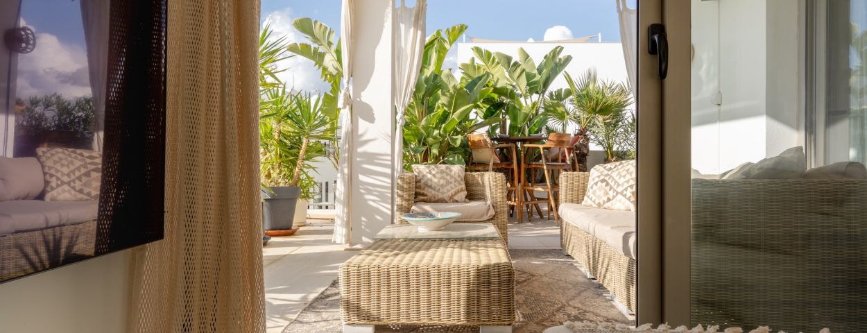 Ubicado en Talamanca, una de las zonas más codiciadas de Ibiza, se encuentra este exclusivo apartamento a tan solo unos minutos de la playa y de Ibiza ciudad. La propiedad cuenta con una superficie construida de aproximadamente 129 m², distribuidos en tres dormitorios dobles y dos baños completos, uno de ellos en suite.