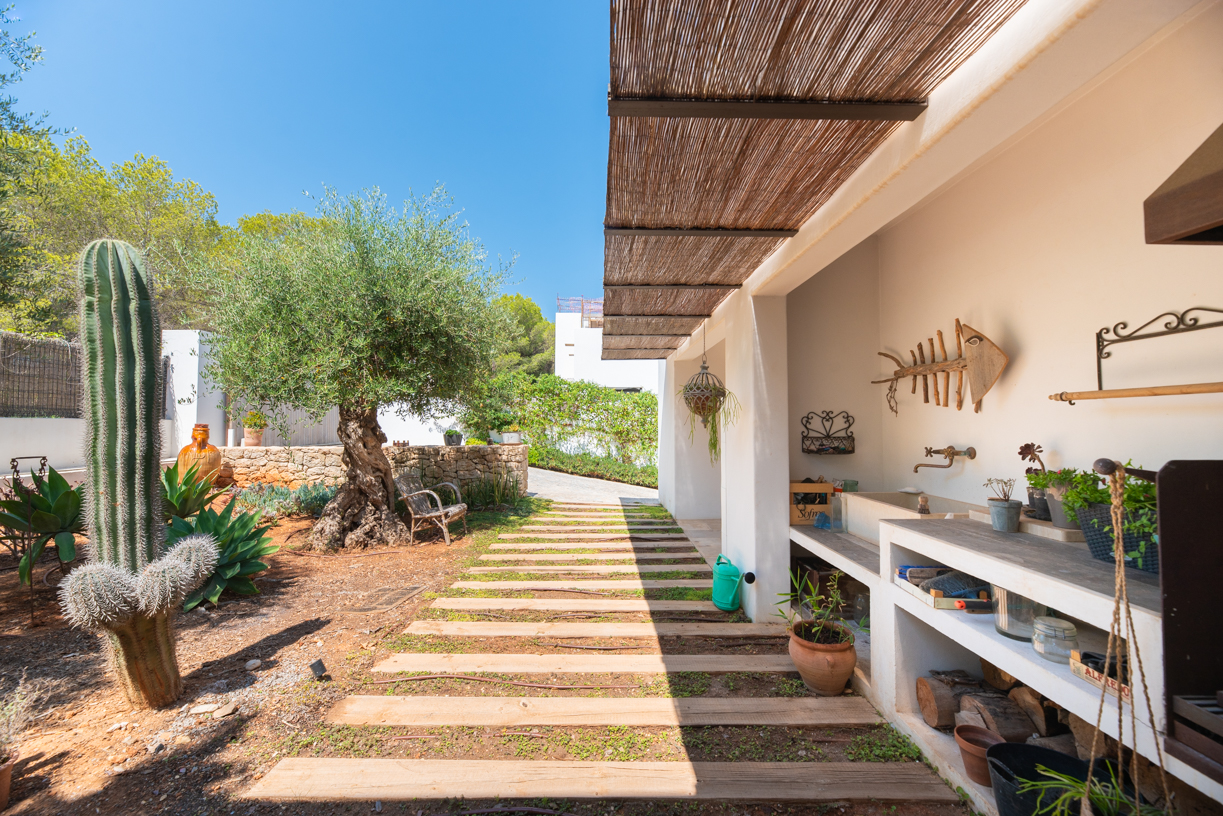 The exterior is a celebration of the Ibiza lifestyle. A mature, landscaped garden surrounds a 12x4m saltwater pool, framed by multiple sun terraces and al fresco dining areas. For those looking to expand, there is a unique opportunity to purchase adjacent urban or forest land.