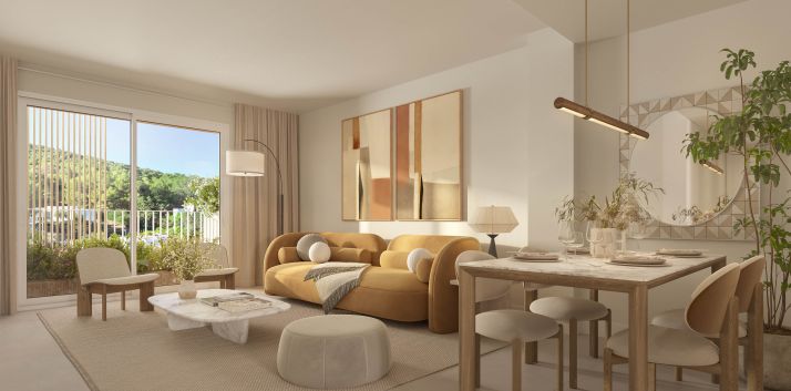 Designed to integrate with the natural surroundings, these residences light facades, natural wood accents, and windows that open to stunning outdoor spaces. With a range of apartment configurations from two bedroom units to spacious three bedroom layouts and a luxurious penthouse with panoramic wide view. All apartment will be sold including a complete kitchen with hob, oven, microwave, fridge and freezer from the brand BOSCH or comparable and a Silestone top or similar.