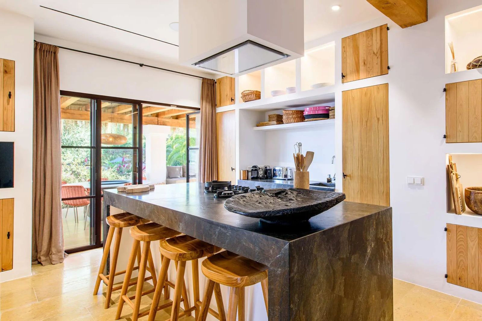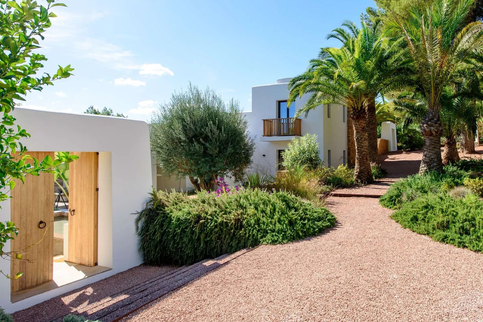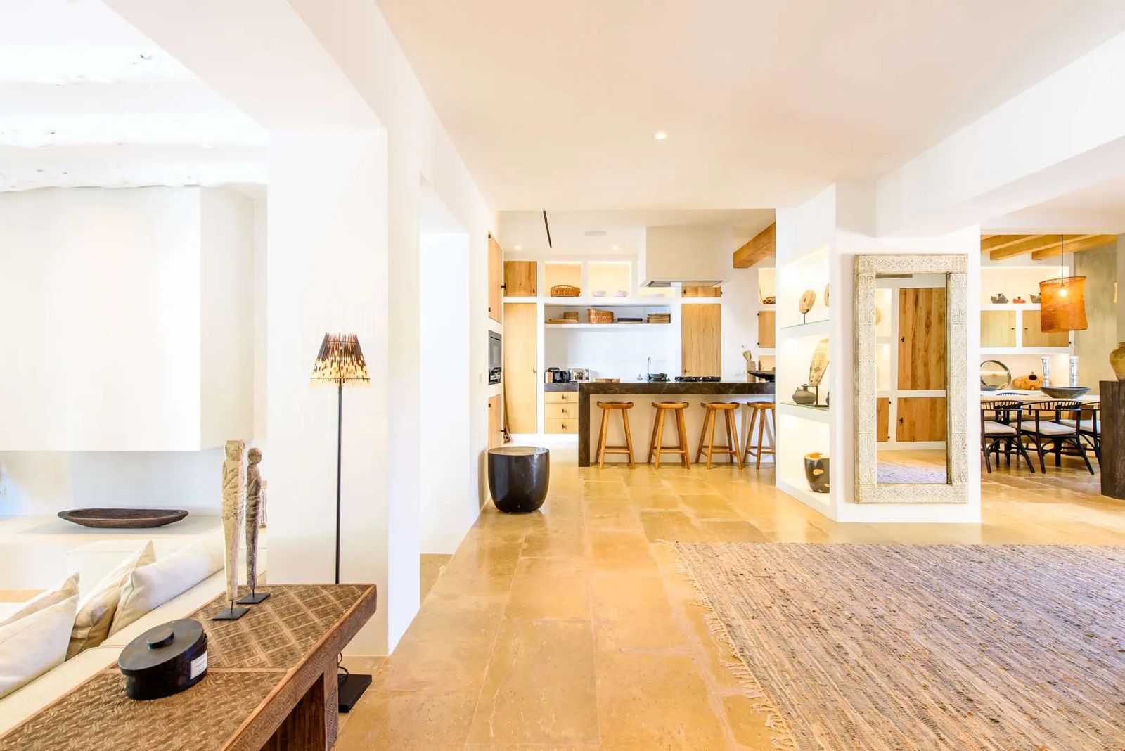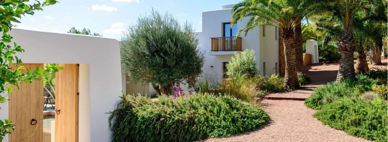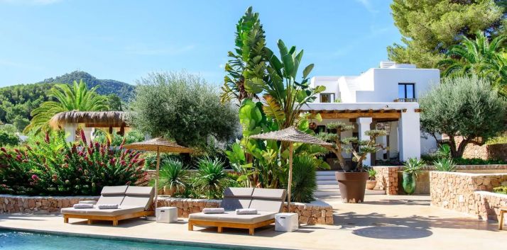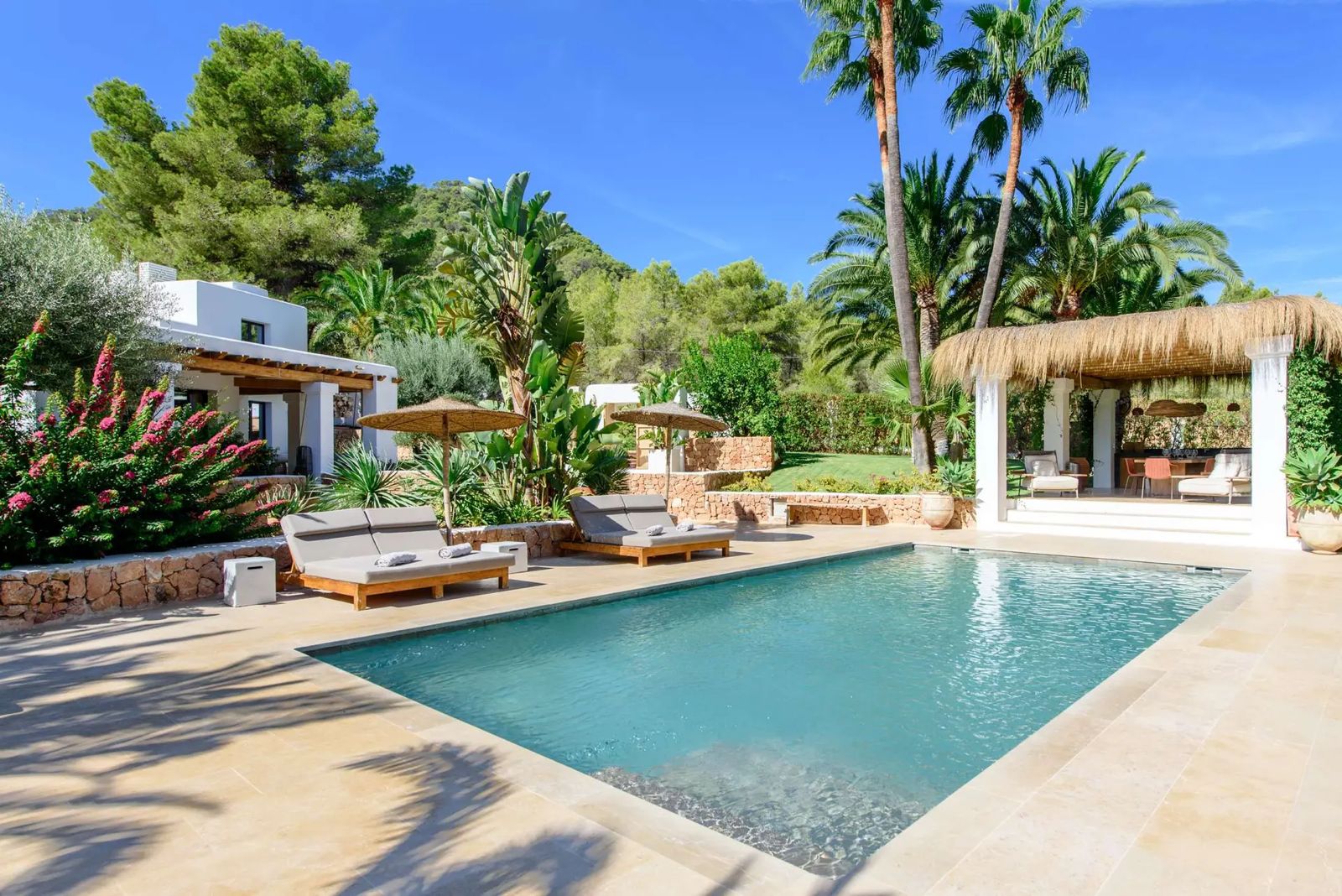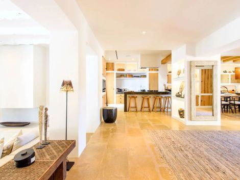 Can Rumani is a beautifully renovated villa that blends traditional finca elements, such as authentic wooden beams, with refined contemporary design. Located just 2 km from San José and within 10 km of some of Ibiza’s most renowned beaches, including Cala Bassa and Cala Tarida, this private estate offers a five-star living experience enhanced by advanced home automation.