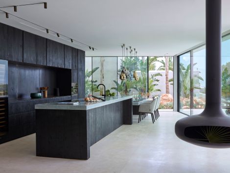 Ayudamos a nuestro cliente a realizar la casa de sus sueños en este proyecto completamente integral. Utilizando una mezcla de materiales procedentes del norte de España e Ibiza, esta casa combina a la perfección la simplicidad de las líneas geométricas limpias con la decadencia de las características de diseño a medida. Azulejos niche hechos a mano y un mural dorado, pintado por un artista local, son solo algunos de los muchos elementos que dan vida a este elegante hogar. Mínima pero rústica, esta casa es una verdadera encarnación del modernismo ibicenco hecho The Blue Pearl way.
