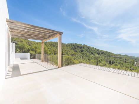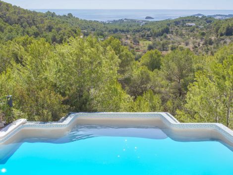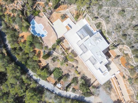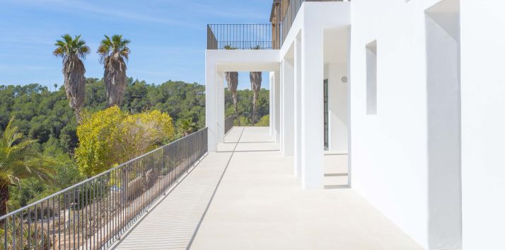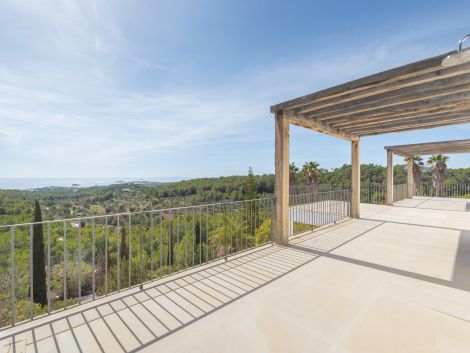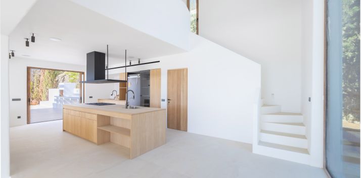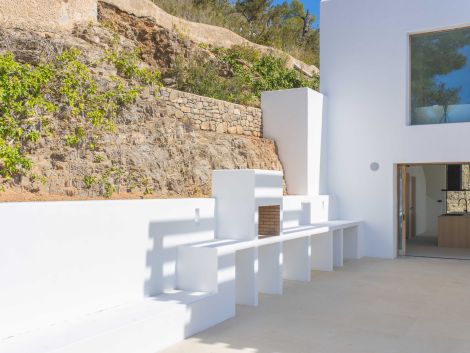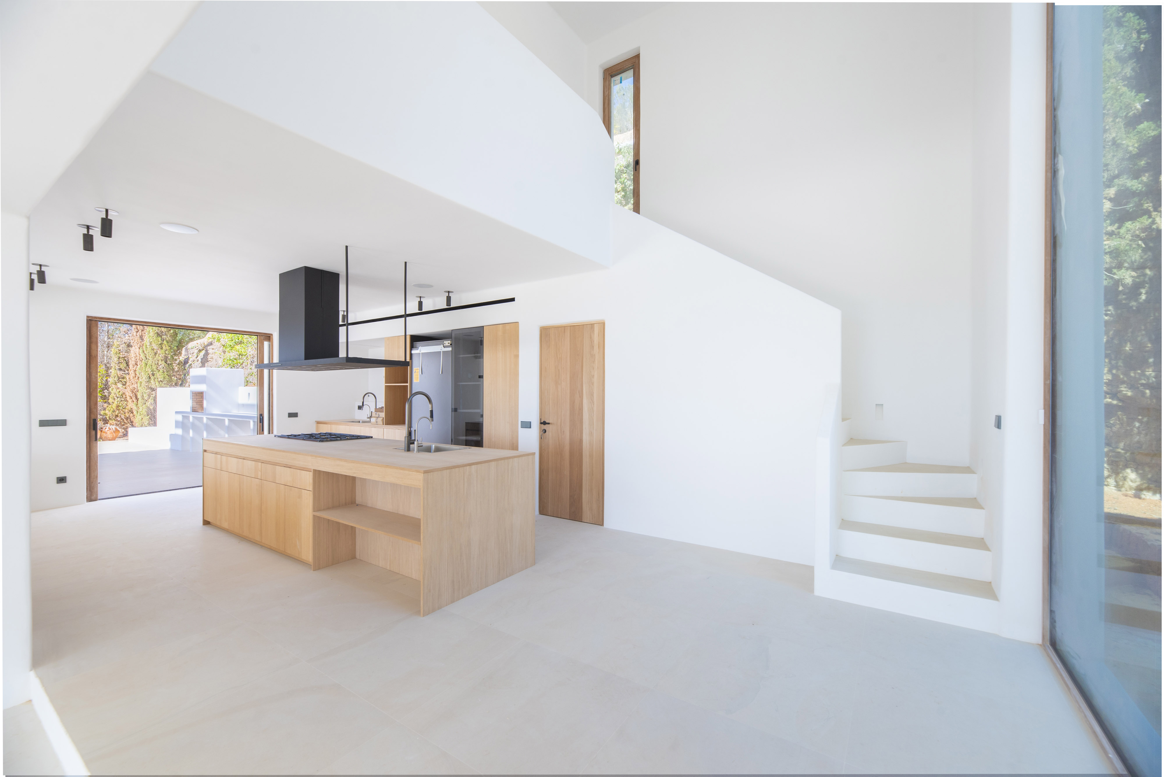 La propiedad consta de seis dormitorios en suite y se extiende a lo largo de 900 metros cuadrados, con 560 metros cuadrados dedicados a refinados espacios de vida. La Finca Monte Mar es una mezcla de arquitectura tradicional ibicenca y diseño moderno, en la que destacan la elegancia y la funcionalidad.