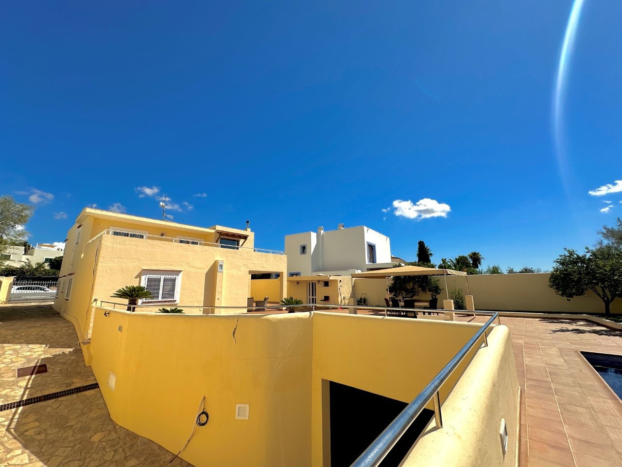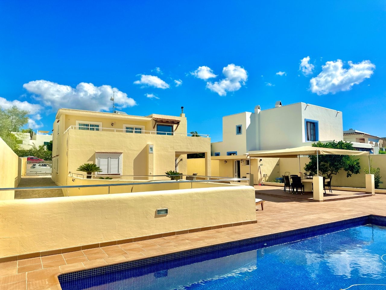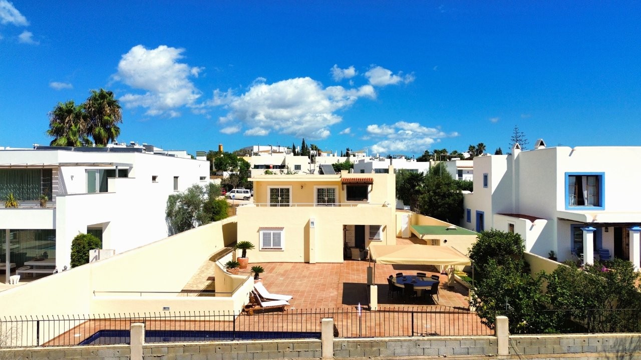 Esta villa está situada en el centro de Santa Gertrudis, con todos sus servicios cerca. La propiedad tiene una superficie construida de 343 m² en una parcela de 726 m².