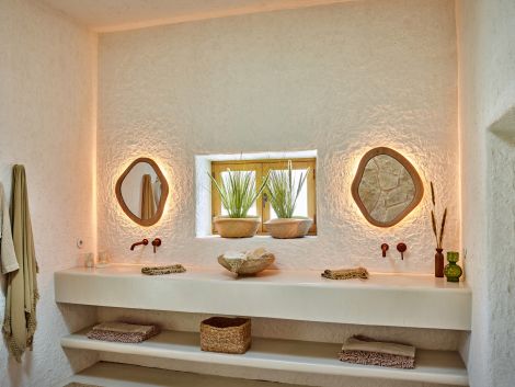 Fiel al espíritu de la isla, esta finca está llena de sorpresas: en el patio trasero encontrará dos cuevas naturales transformadas en un spa y una bodega con zona de degustación.