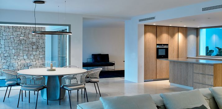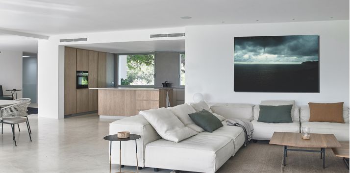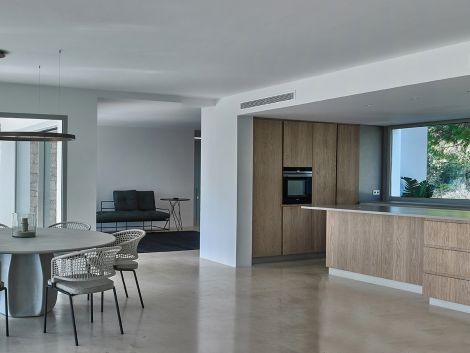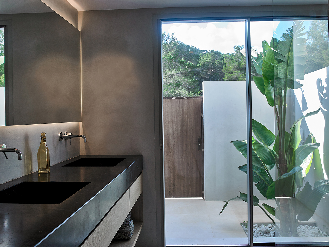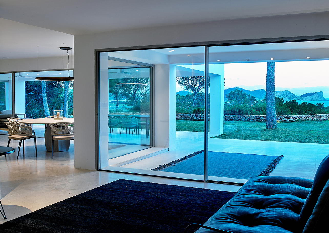 Esta propiedad minimalista y chic, con amplio diseño de planta abierta y grandes ventanales, te mantiene conectado, en cada rincón de la casa, con Ibiza y sus alrededores.