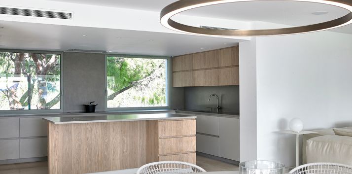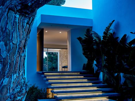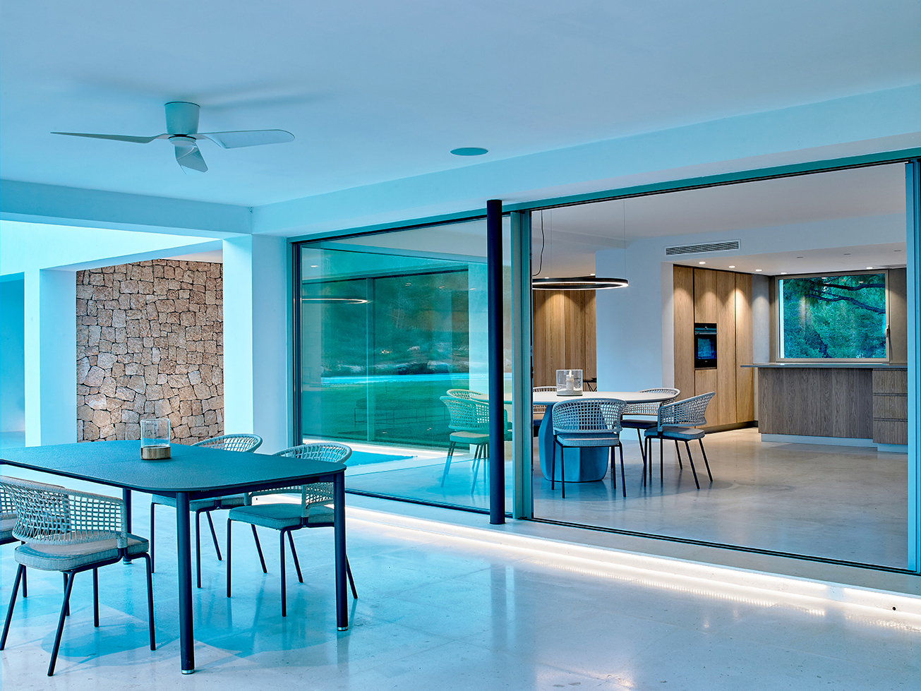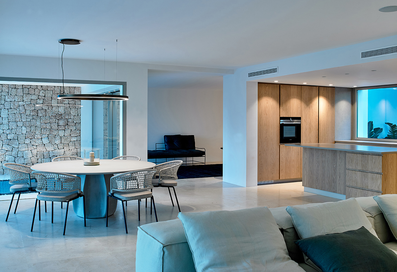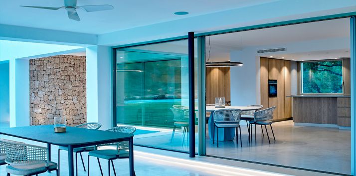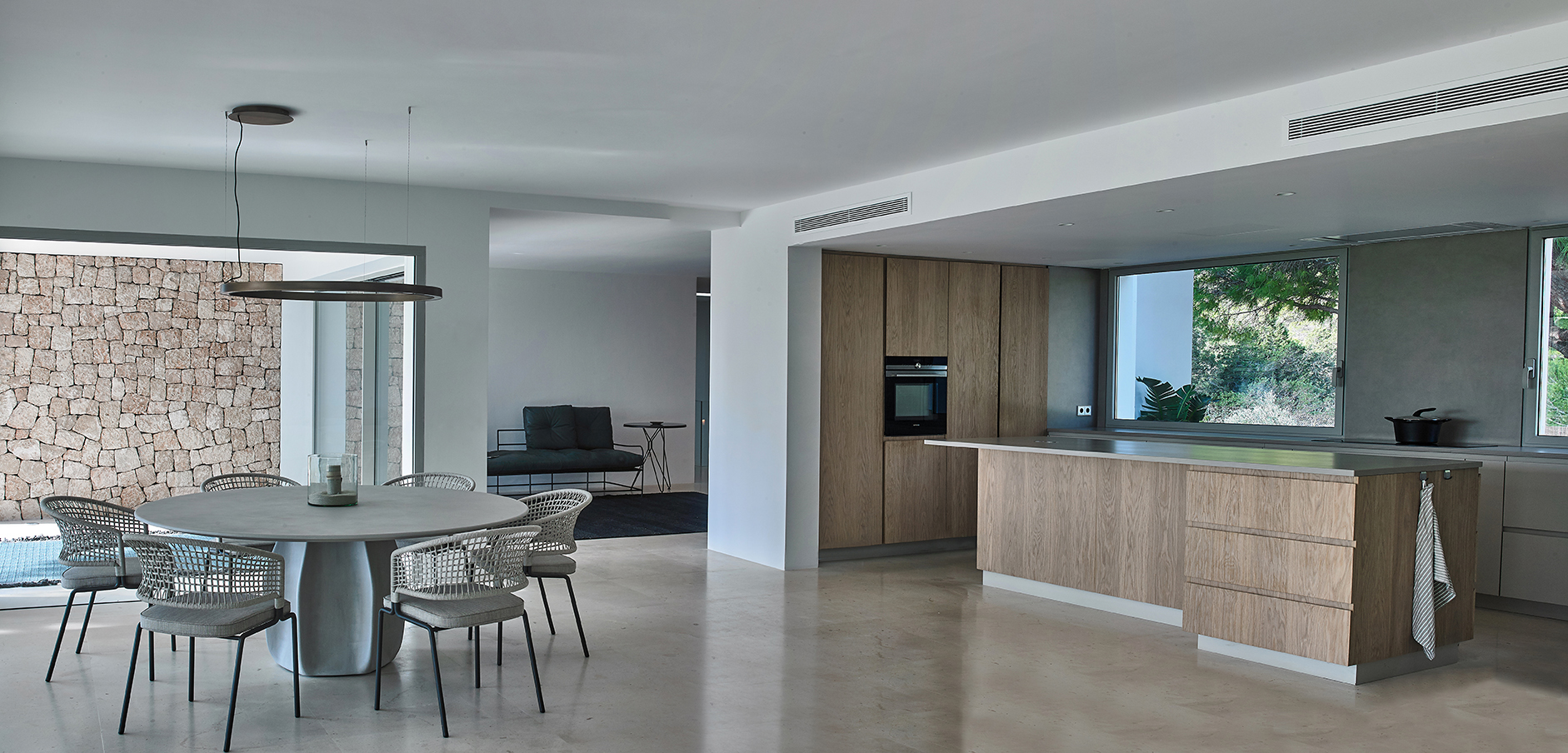 Esta propiedad minimalista y chic, con amplio diseño de planta abierta y grandes ventanales, te mantiene conectado, en cada rincón de la casa, con Ibiza y sus alrededores.