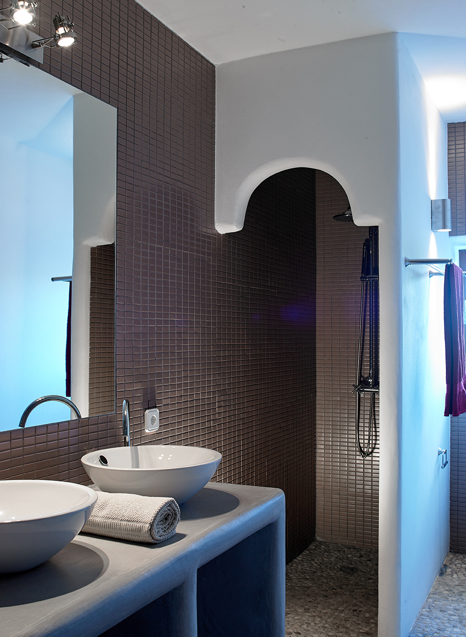 Sus habitaciones amplias y luminosas, la piedra natural, y sus paredes y pilares griegos, aportan a esta excepcional villa, ese toque agradable con espíritu bohemio