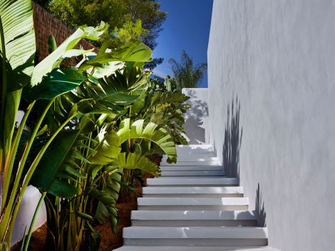 Utilizando una mezcla de materiales procedentes del norte de España e Ibiza, esta casa combina a la perfección la simplicidad de líneas geométricas limpias, con las características del diseño a medida.