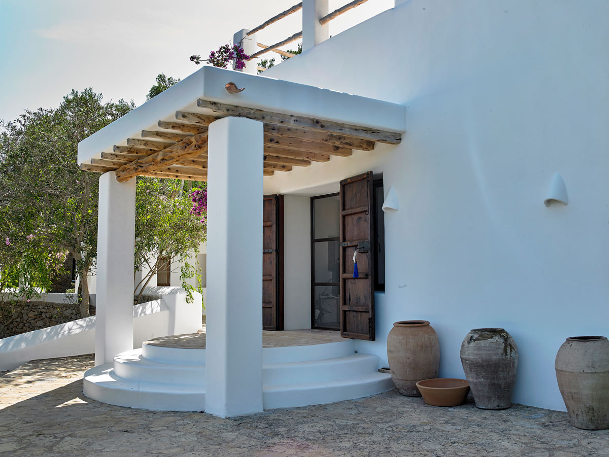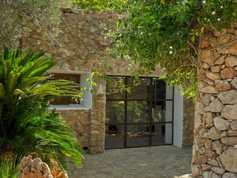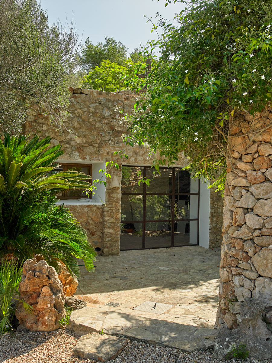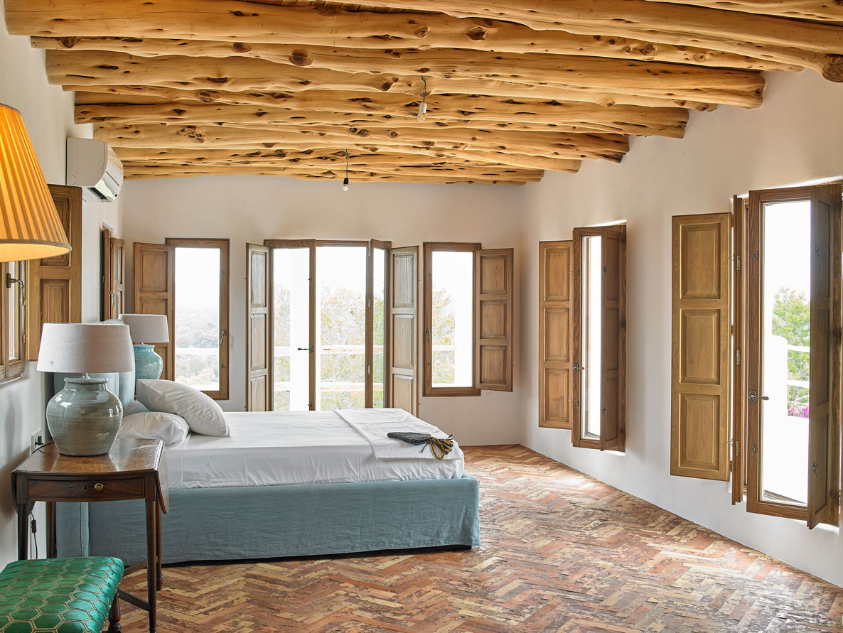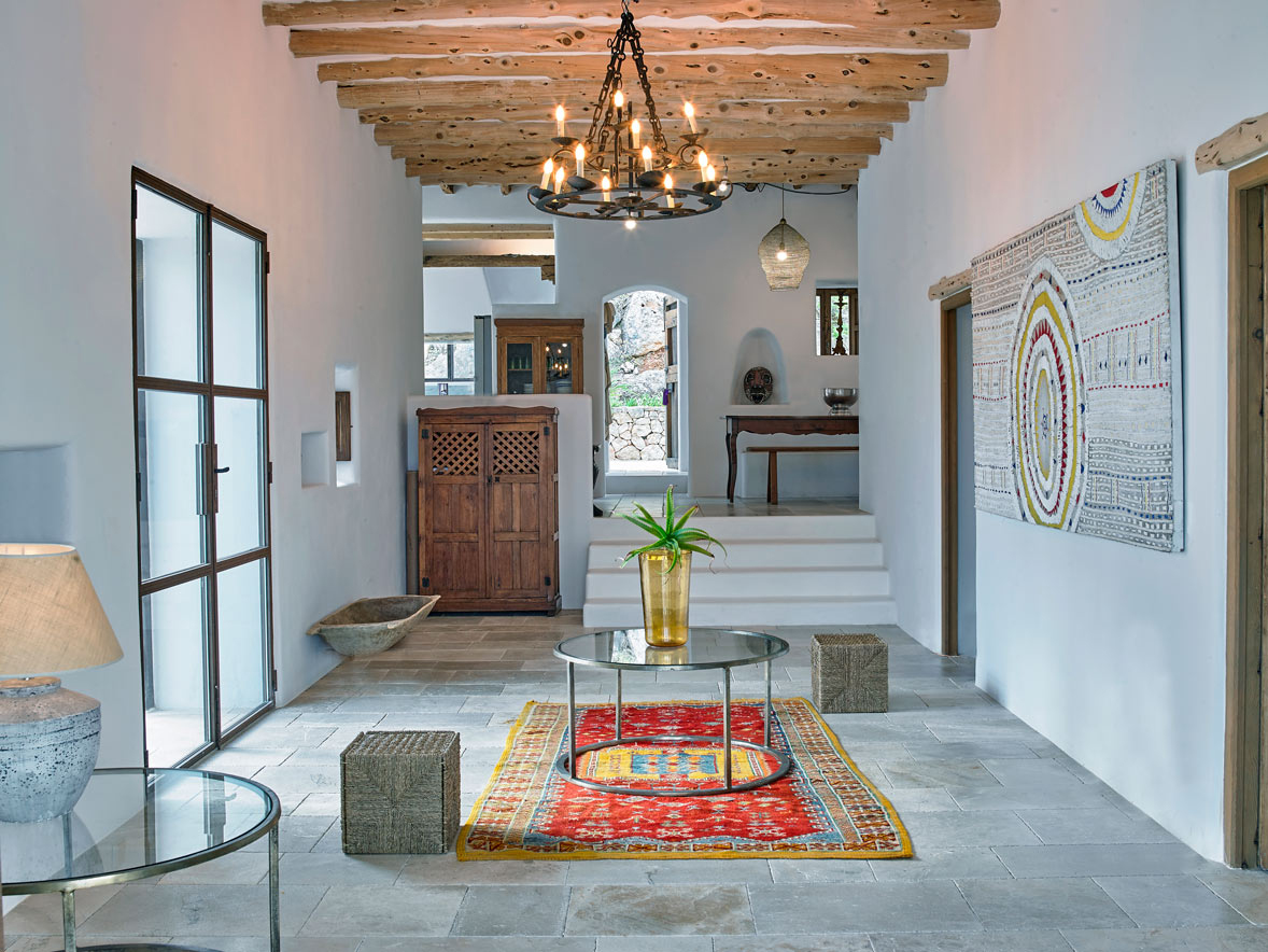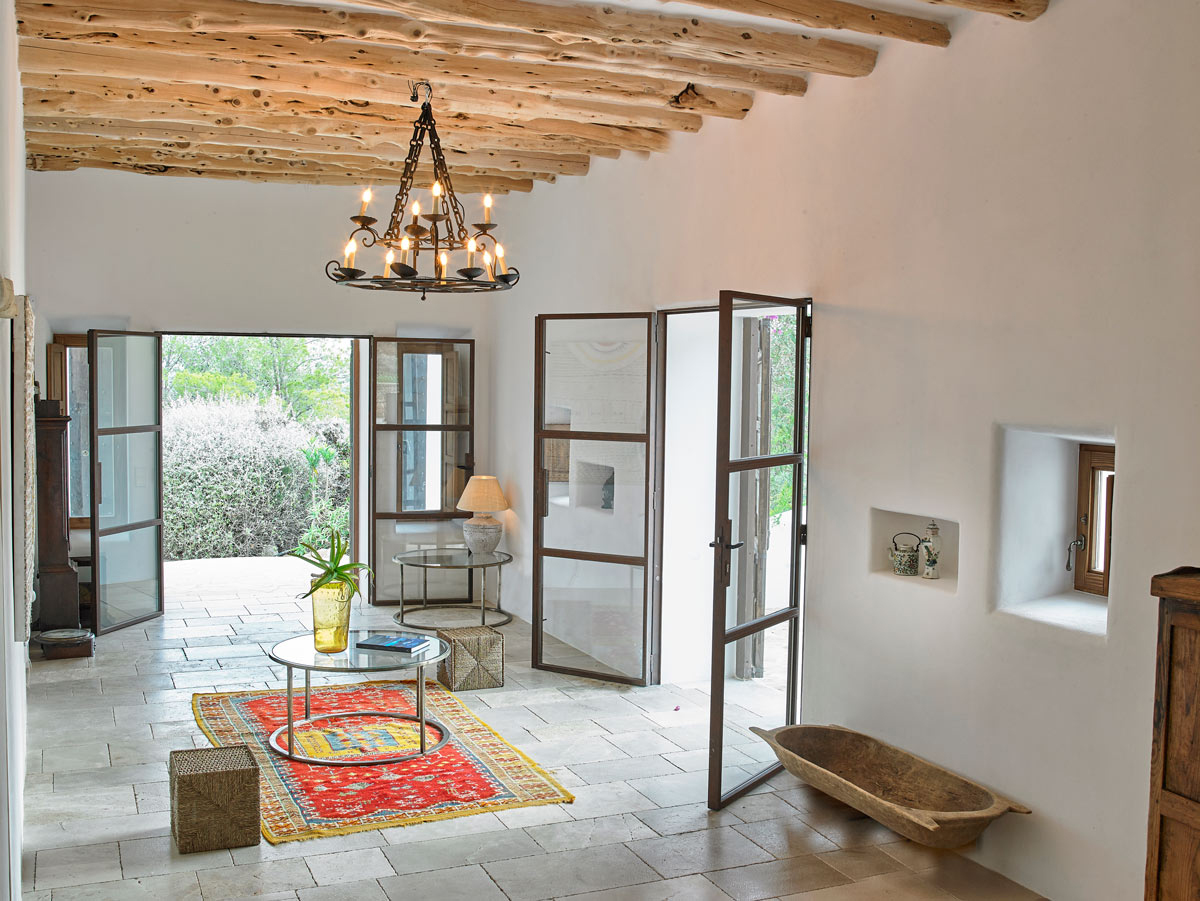 La reforma integral de esta casa vacacional cerca de Santa Eulària des Riu tuvo como testimonio el trabajo artesanal de la isla con sus vigas de Sabina, sus puertas de roble macizo hechas a medida e impresionantes ventanas con marcos de bronce. El resultado fue, una casa familiar cálida y acogedora que coexiste en armonía con su entorno natural.