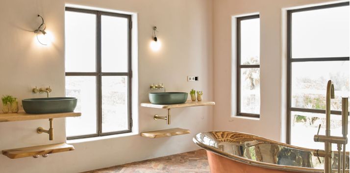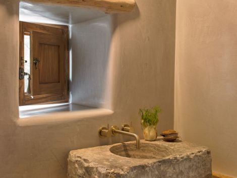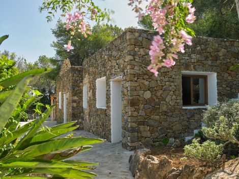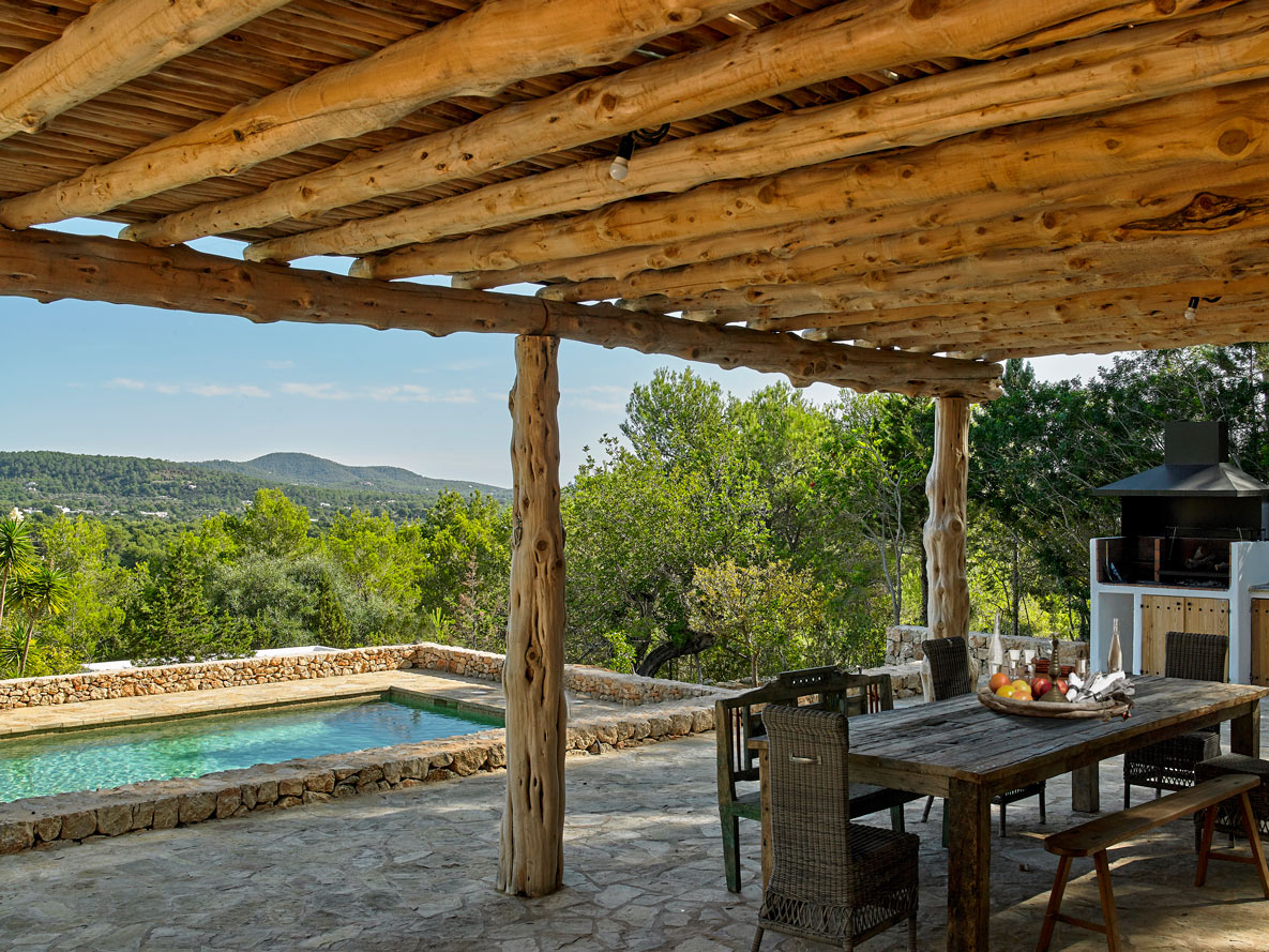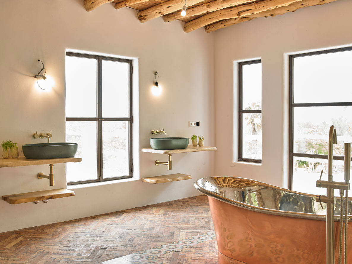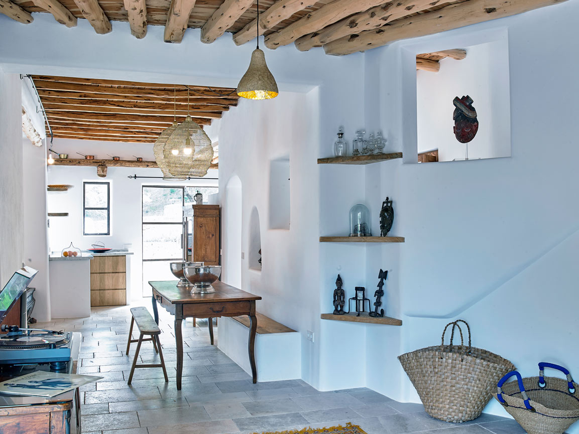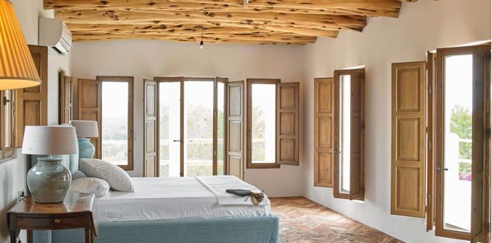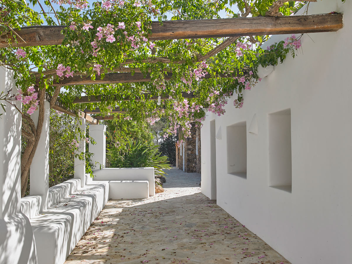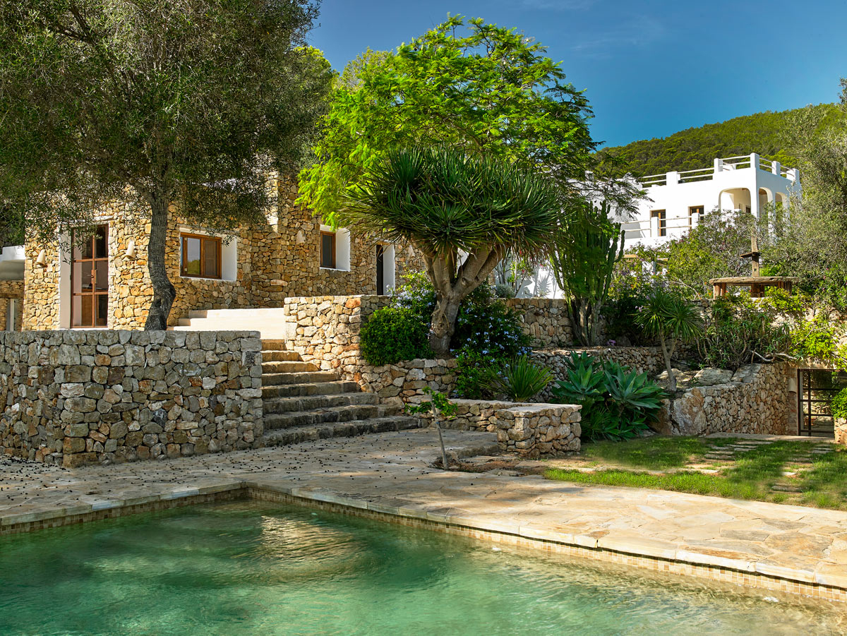 La reforma integral de esta casa vacacional cerca de Santa Eulària des Riu tuvo como testimonio el trabajo artesanal de la isla con sus vigas de Sabina, sus puertas de roble macizo hechas a medida e impresionantes ventanas con marcos de bronce. El resultado fue, una casa familiar cálida y acogedora que coexiste en armonía con su entorno natural.