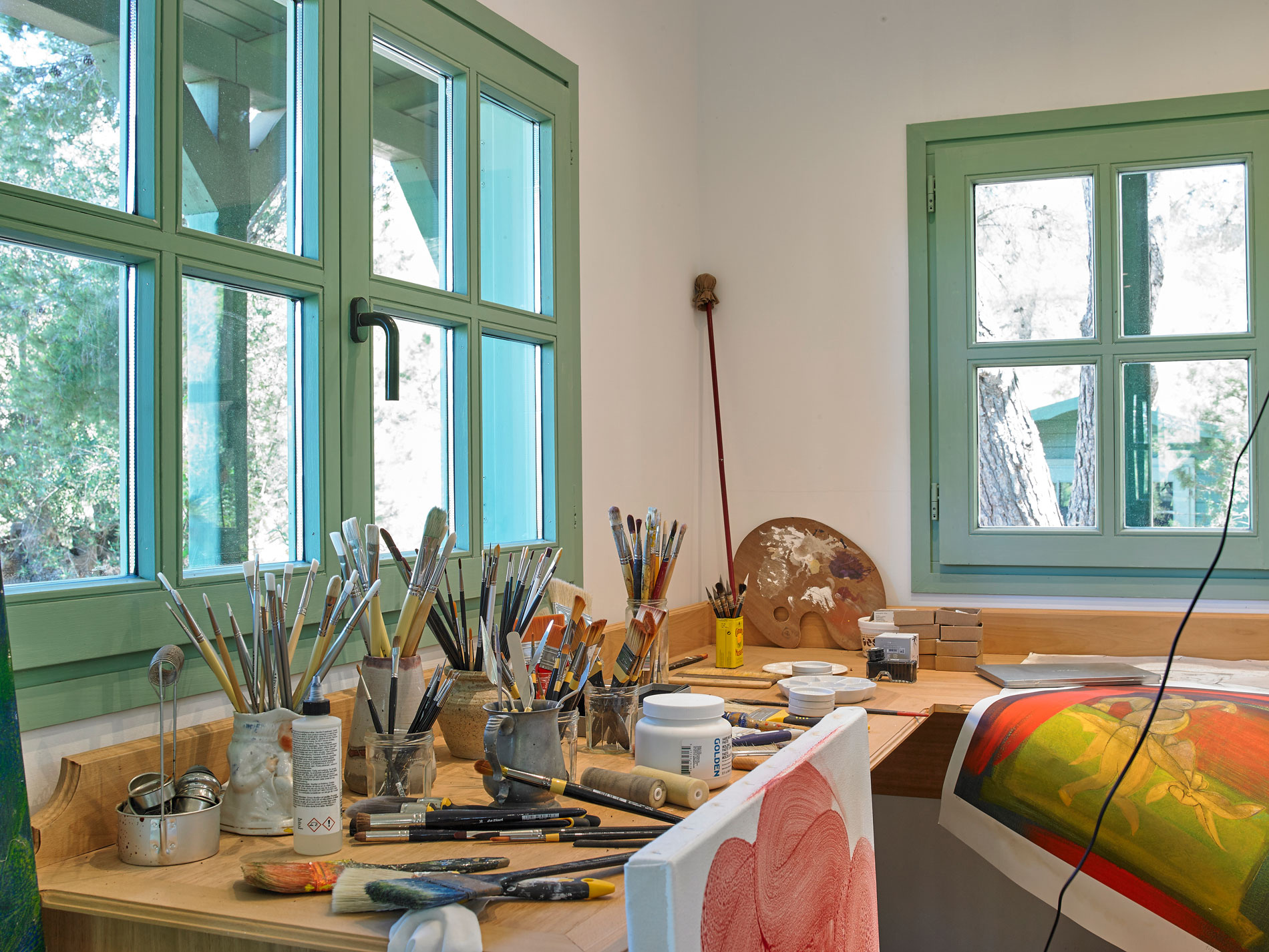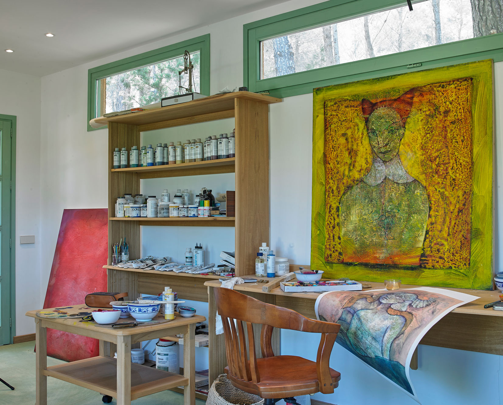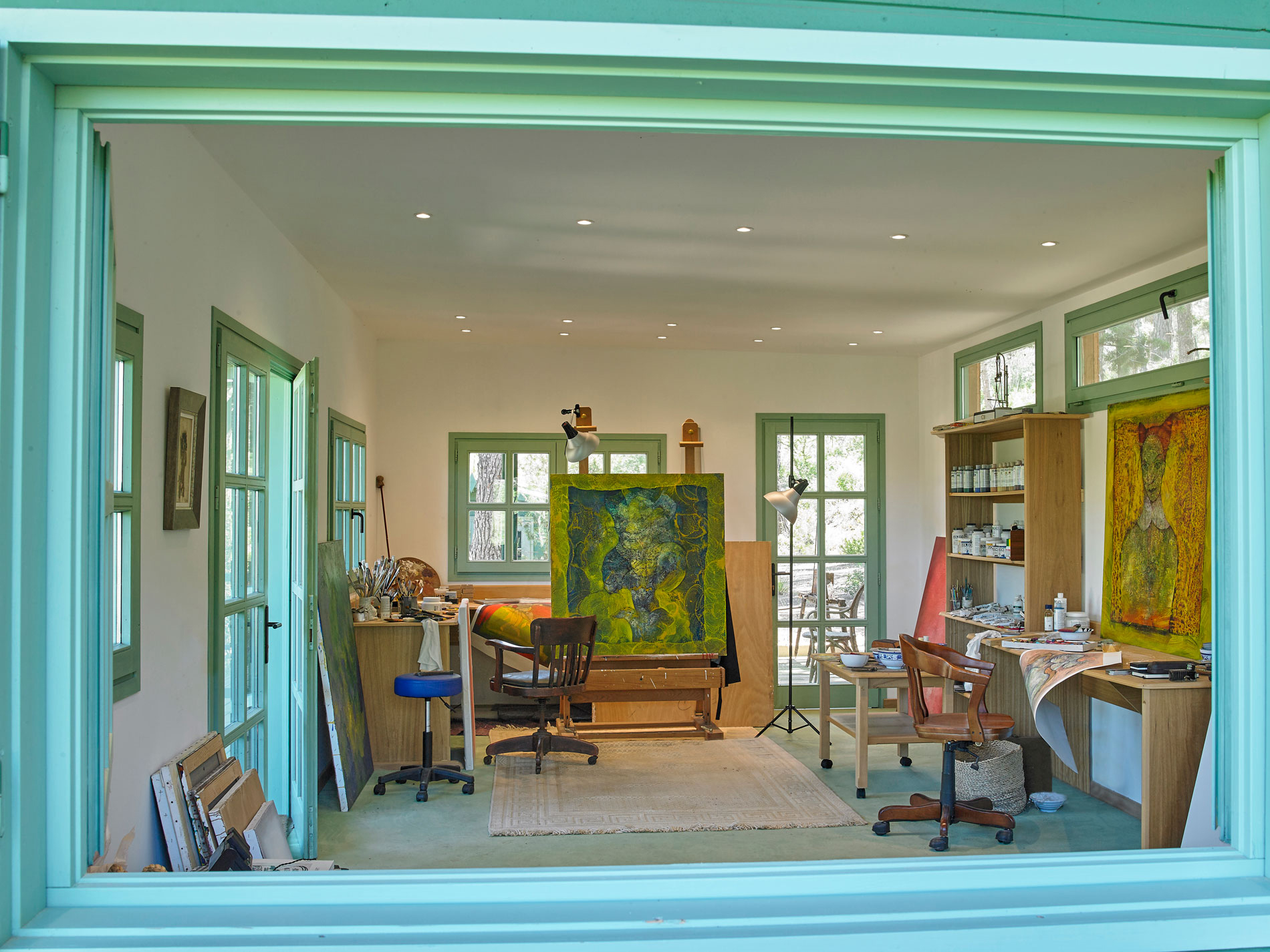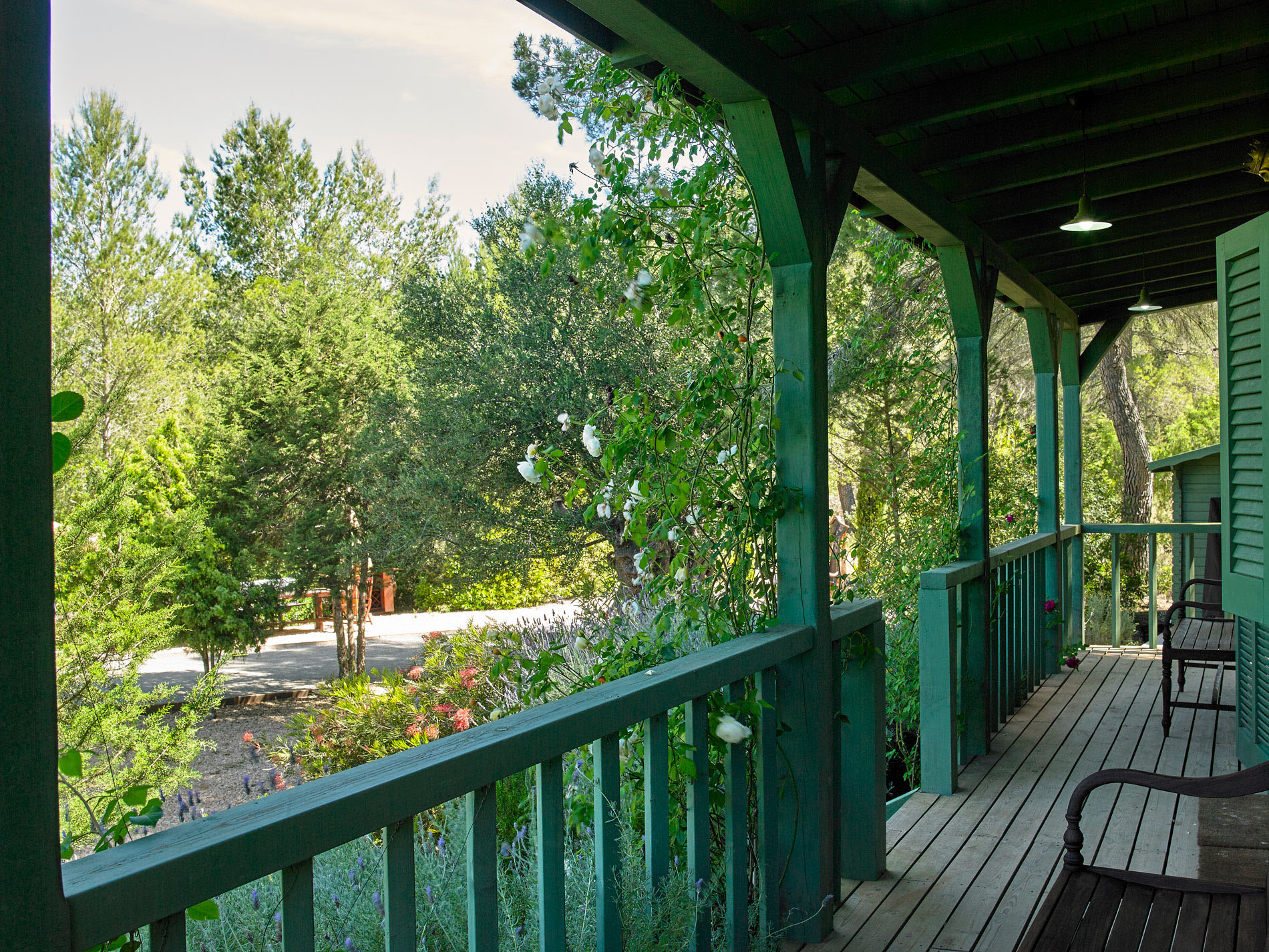 Se nos encomendó un proyecto para realizar un taller creativo para un famoso artista británico. El diseño de esta discreta cabaña de madera ubicada en el bosque, con una estructura sostenible fue en lo que consistió nuestro objetivo.Sus intensos colores verdes y abundante luz, integran a esta cabaña en su entorno natural; el espacio perfecto para el trabajar con tranquilidad e inspirándose con la belleza salvaje de la campiña ibicenca.