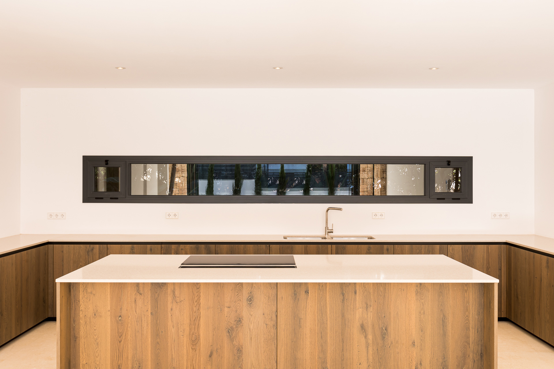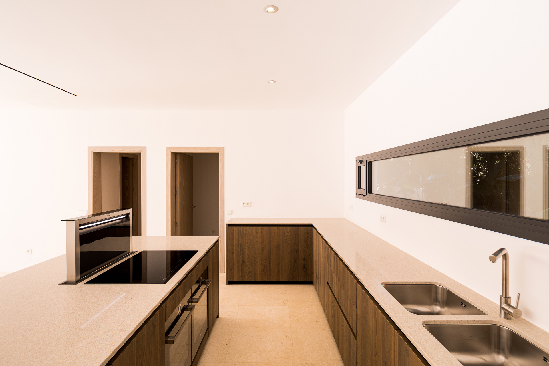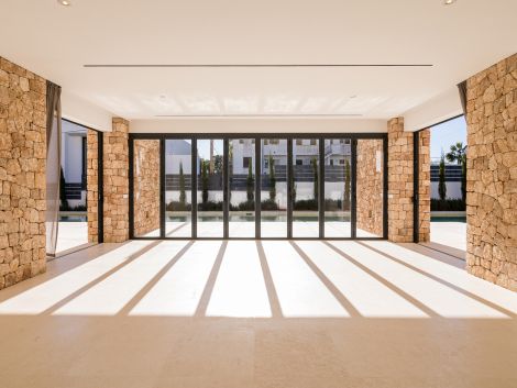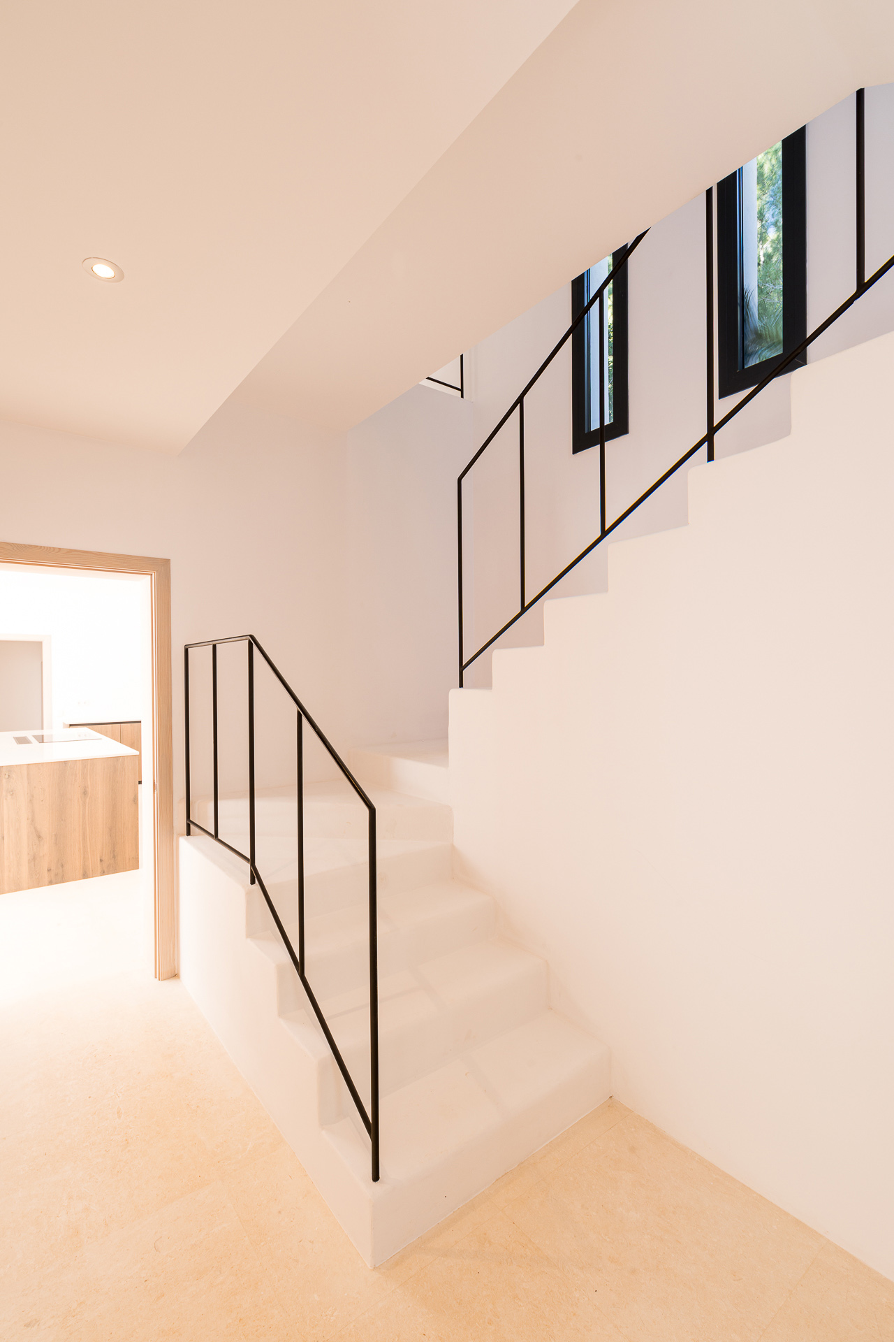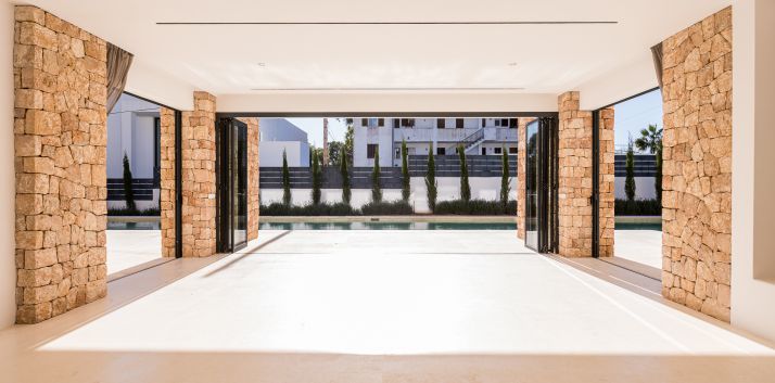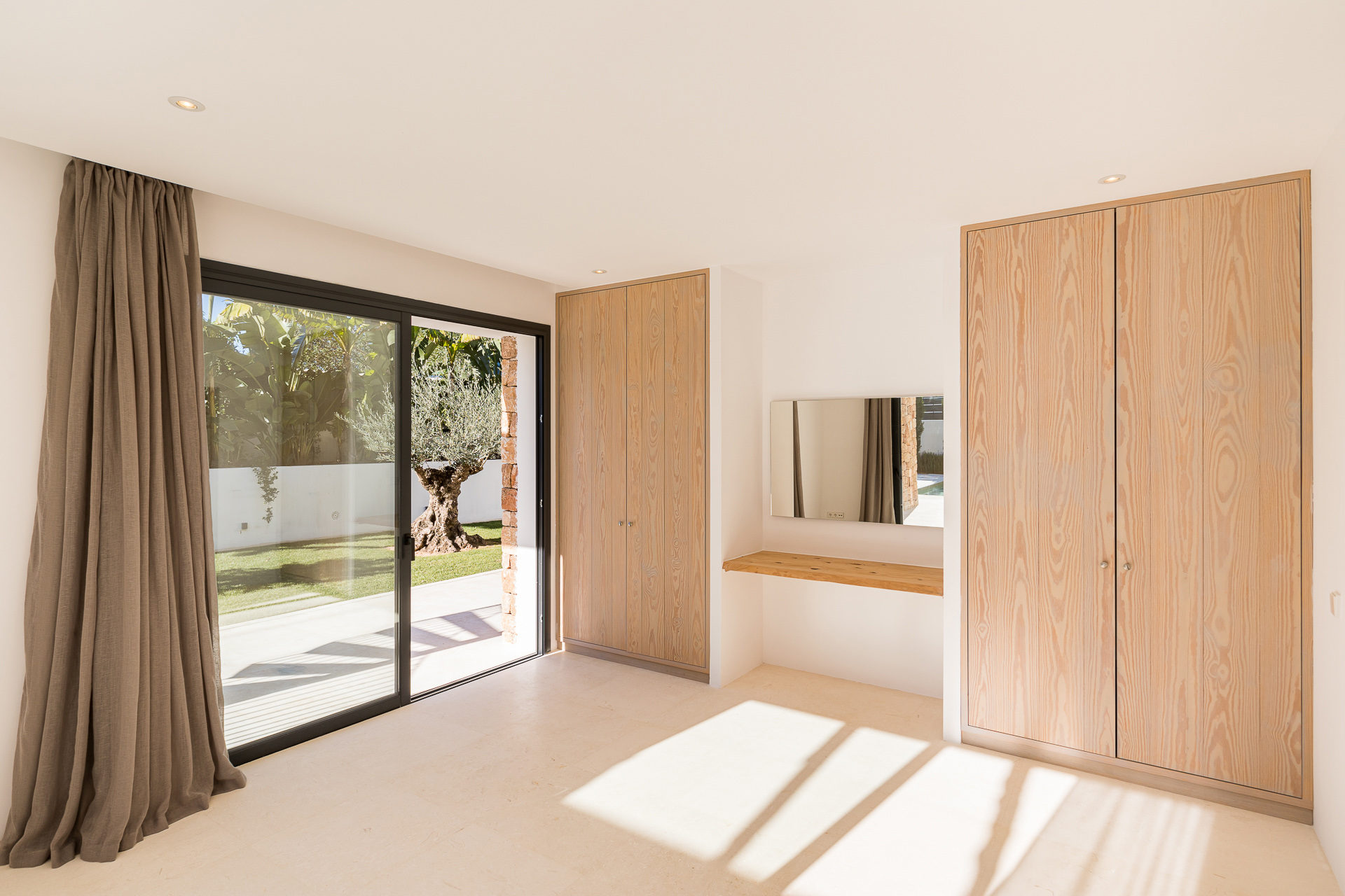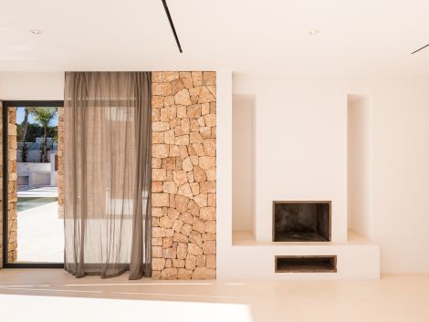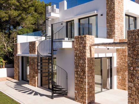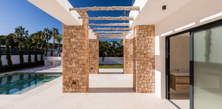 Can Masia fue diseñada por el amor que su propietario tiene por el diseño moderno y demuestra cómo la sostenibilidad puede crear belleza. Para esta casa contemporánea de alto standing, utilizamos tecnología SISMO, un innovador sistema de celosía de acero inoxidable con una espuma porosa en el interior. Este eficiente y modular marco requirió de menos hormigón. Además, produjo paredes naturalmente ventiladas para un entorno de vida eficiente y sostenible. Equilibramos el diseño con piedra ibicenca que conectaba la casa a su entorno natural