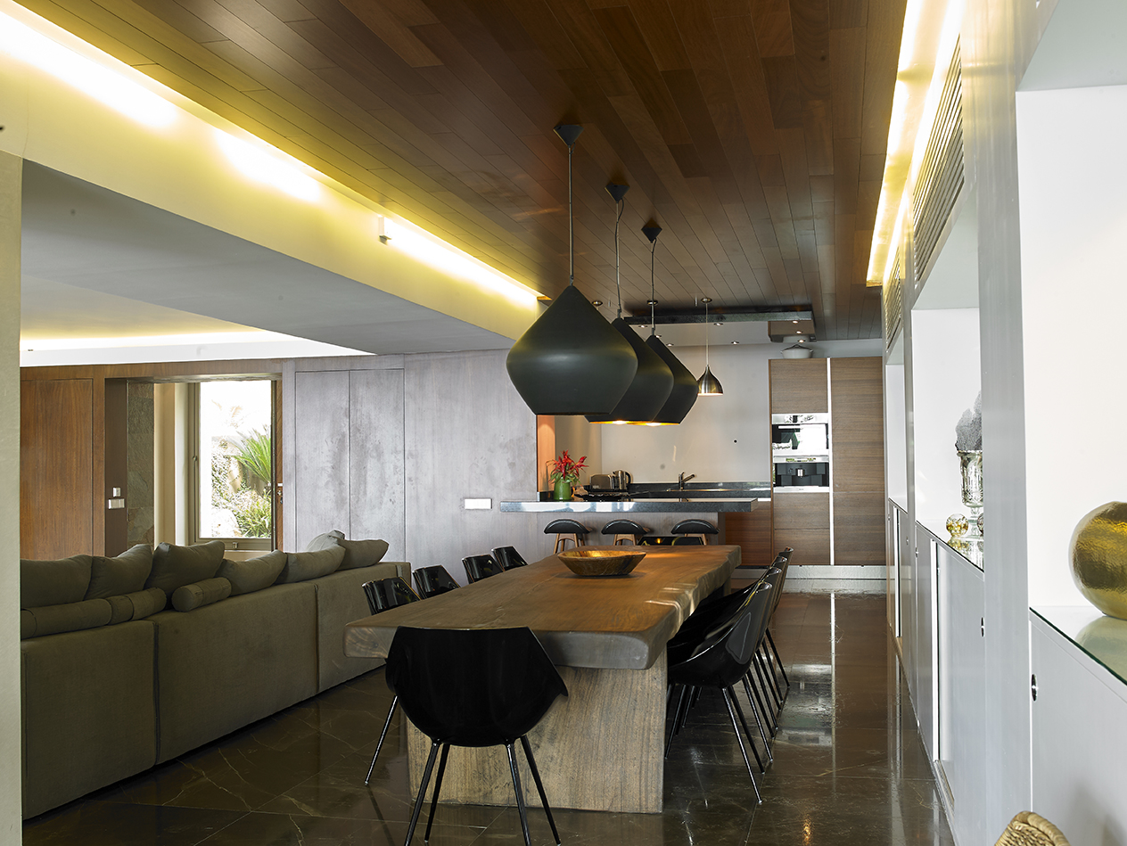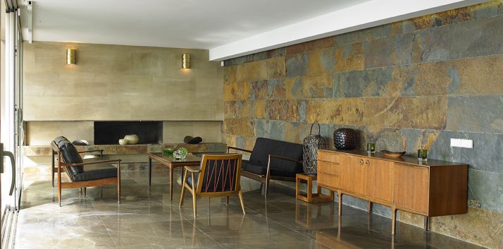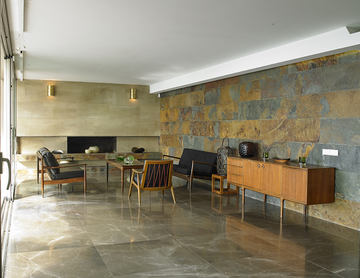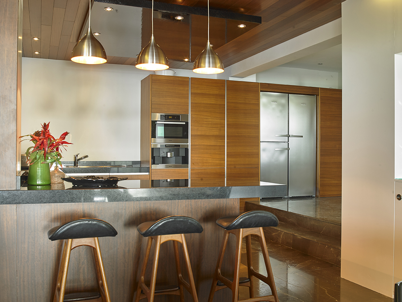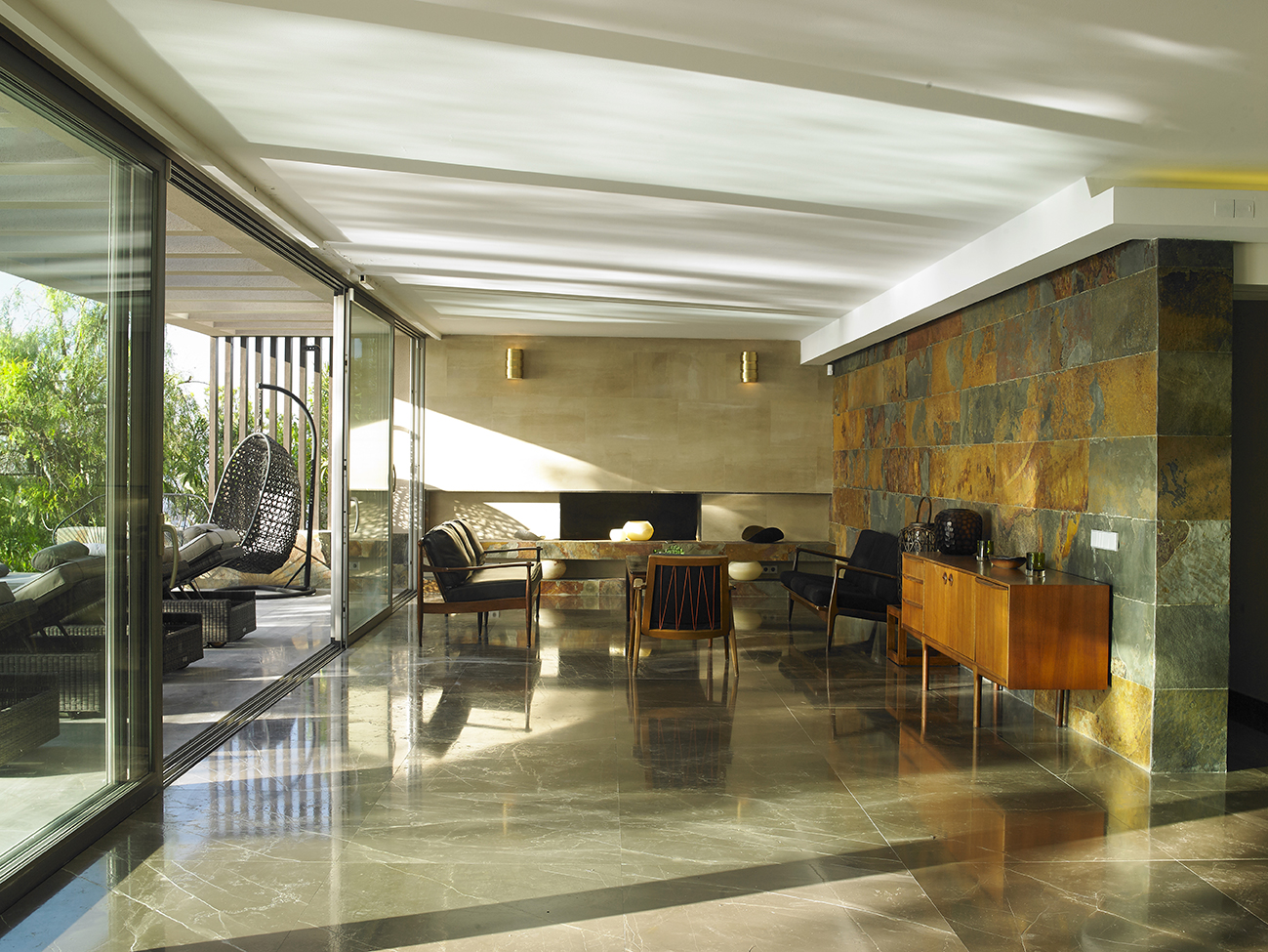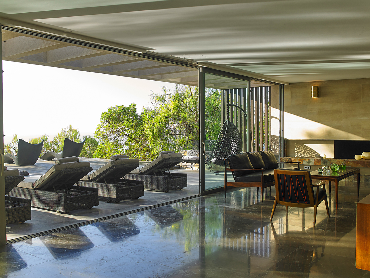 El diseño de esta casa, fue el encargo de una joven pareja, que se inspiró en el estilo arquitectónico del fallecido Frank Lloyd Wright. Sus grandes cristaleras que van de suelo a techo y la gran cantidad de piedra, madera y mármol le dan un aire ultramoderno que compatibiliza con su integración en el entorno.