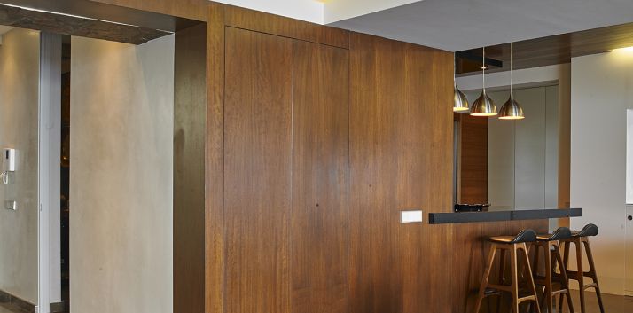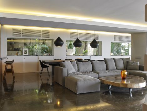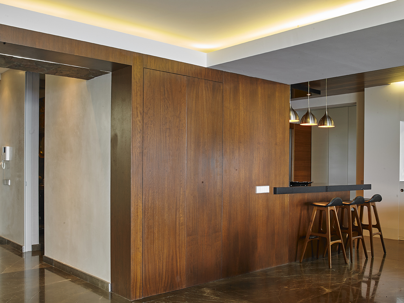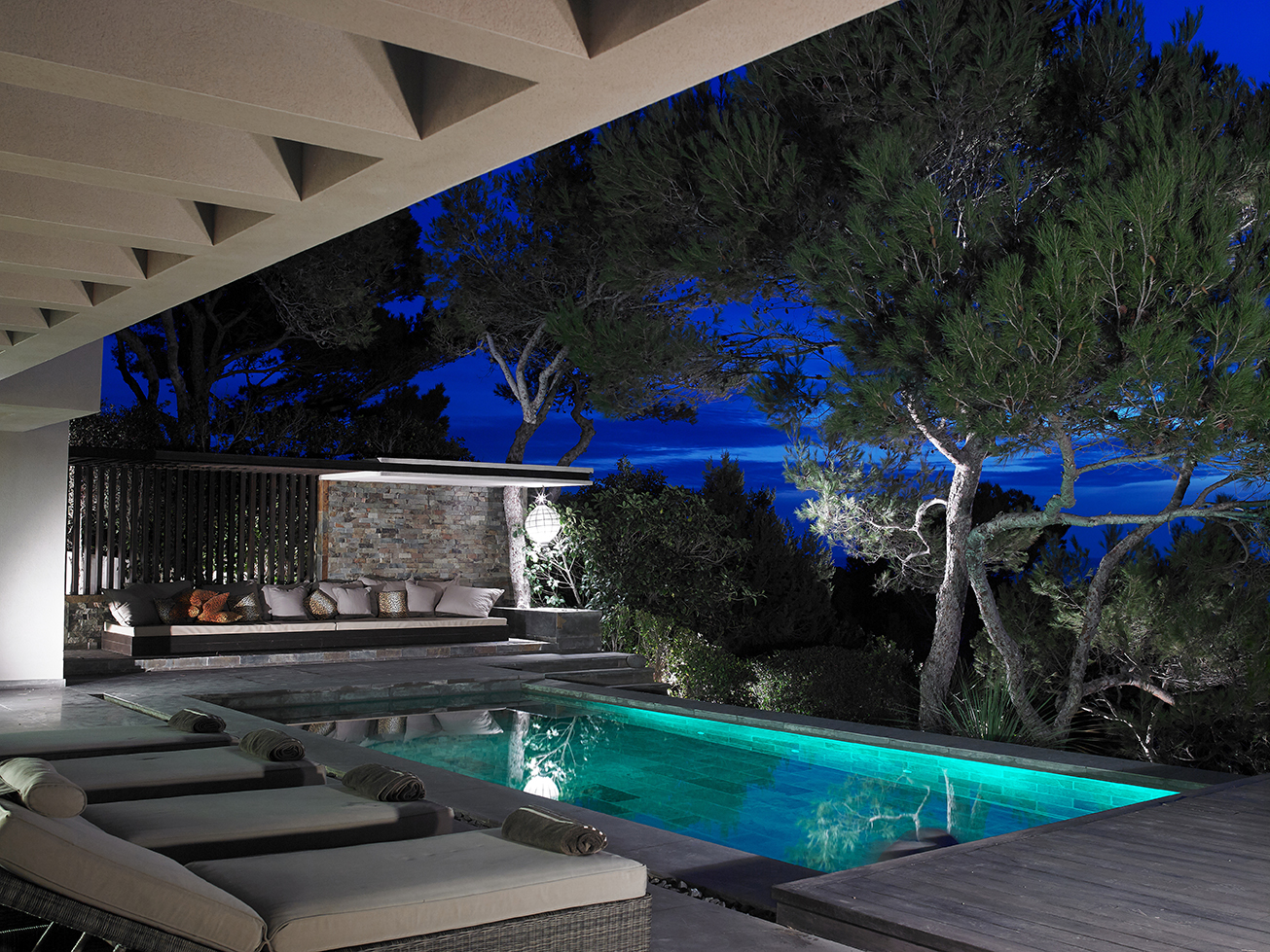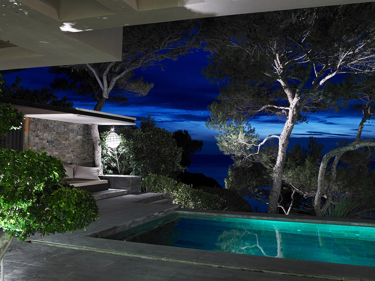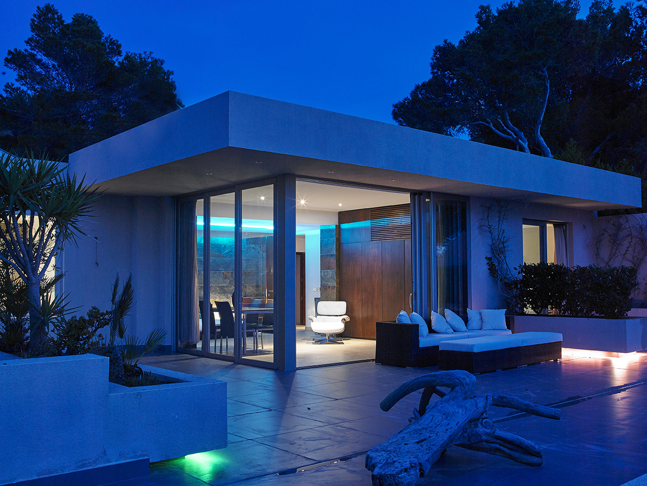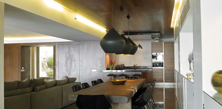 El diseño de esta casa, fue el encargo de una joven pareja, que se inspiró en el estilo arquitectónico del fallecido Frank Lloyd Wright. Sus grandes cristaleras que van de suelo a techo y la gran cantidad de piedra, madera y mármol le dan un aire ultramoderno que compatibiliza con su integración en el entorno.