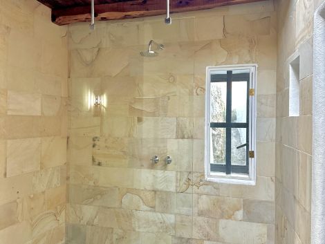 The main house features a spacious living room, a large kitchen ideal for family meals or entertaining, three comfortable bedrooms, and two bathrooms, including a generous central bathroom with a bathtub. Every detail of the renovation respects the property’s original character while incorporating high-quality finishes throughout.