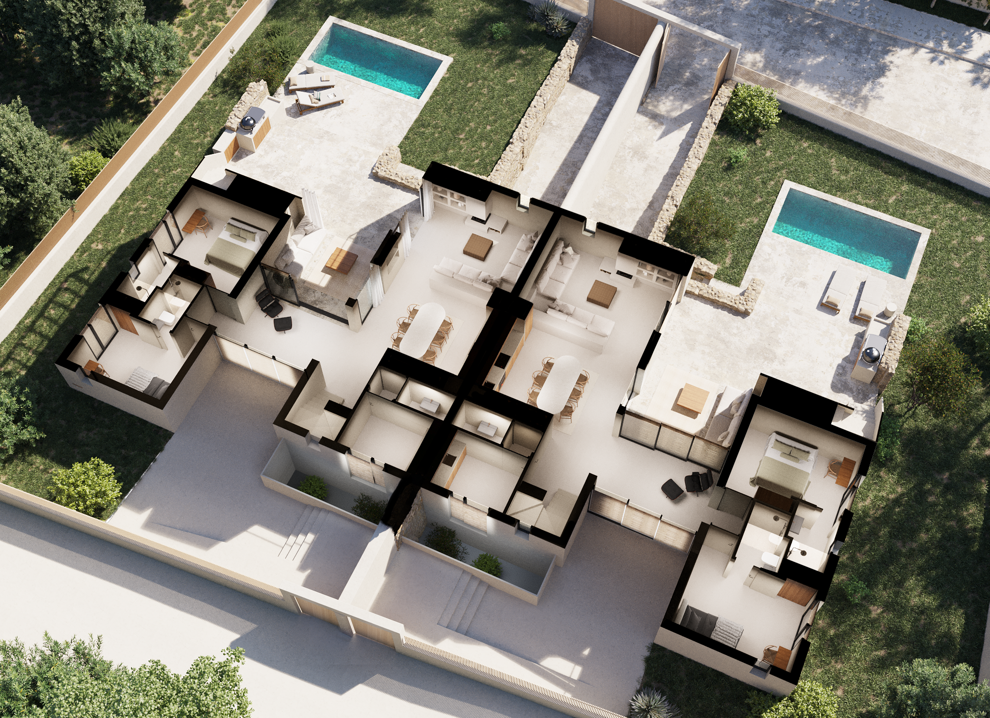 Located in the residential and family-friendly area of Port des Torrent on Ibiza’s west coast, the property enjoys a quiet setting close to beaches and everyday amenities such as restaurants, shops, and supermarkets.